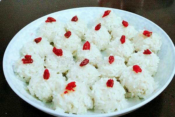 7.蒸熟后,点缀一点枸杞,更漂亮些。装盘。