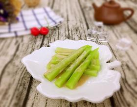 锅里烧水,水开后滴入适量的食用油,放入芥兰汆三十秒,关火余温再汆三十秒。