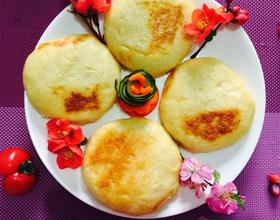 取一块玉米面按成饼状,放入锅里,锅底放少许食用油