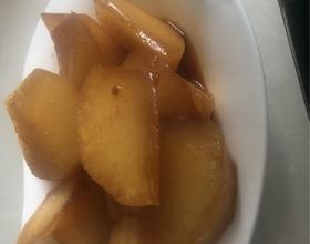 锅内热油,7分热加入白糖煮至起泡,倒入萝卜炒糖色