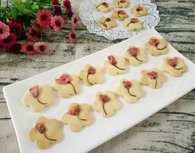 - 9. 将泡开的樱花挤干水分放在饼干上
