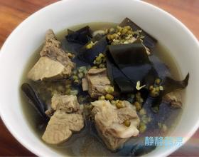 炖至海带软烂,绿豆开花,关火后加入适量的盐