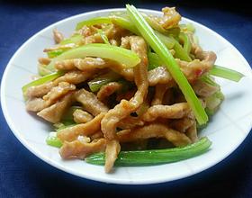 芹菜切成匀长大小的丝,不必太细,不然成菜不好看,且不脆。