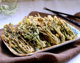 1.放淀粉的时候自己掌握,感觉蛋糊浓稠能挂上浆就可以了,如果还是太稀就放少许面粉。2.炸香椿的时候用中火炸这样表皮定型快,但是也要快点翻面,防止糊掉,如果用小火炸定型慢,炸出来的香椿鱼比较吸油,吃起来会腻。
