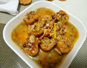 焖熟后加葱花,我的葱绿没有了用的葱白。水淀粉勾薄芡。