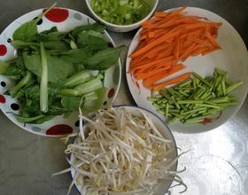 绿豆芽胡萝卜小青菜蒜薹米粉牛肉