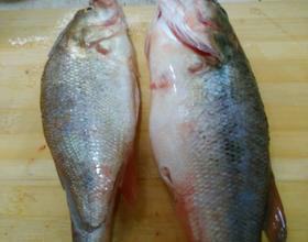 加料酒,酱油,姜片,糖,油,水没过鱼的一半高,两条鲈鱼重叠放,盖锅盖,汤汁烧干就放味精葱花出锅