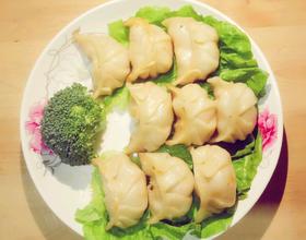 最后给点生菜垫着盘底,将煎好的锅贴起锅摆盘。给一个花椰菜装饰。