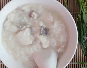 粥煮开锅后尝一下米软放入鱼片,一片一片的放入,撇去浮沫。