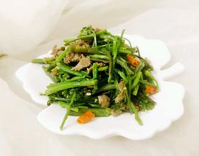 牛肉切片,用盐、生姜,生抽和红薯粉腌制15分钟