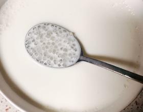 椰浆牛奶白砂糖入锅煮至沸腾 加入煮好西米 即可以