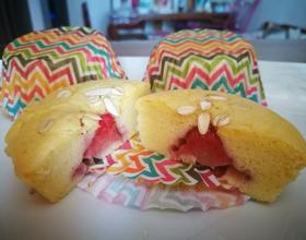 草莓洗干净(我买的是小草莓,如果是大草莓可以切开)先铺一层面糊,在模具中间,放入草莓,再把面煳,加到八分满。