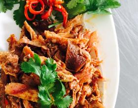 将烤好的兔子取出,把兔肉撕成丝,加入辅料拌匀即可。