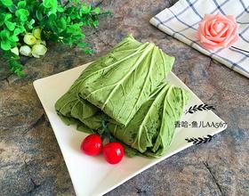 - 12. 取一个白菜叶,下面白色茎的部分横着折几下,放上拌好的饭。