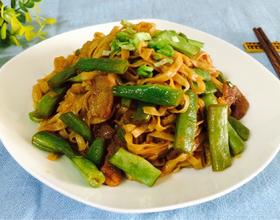 焖面底下垫的蔬菜最好用需要长时间炒的蔬菜。不要用嫩叶菜。肉选用五花肉焖出的面很香。