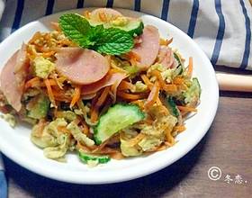 *鸡蛋在搅拌均匀前已经放了盐了,所以炒胡萝卜时就不需要放太多的盐*胡萝卜先放多点油炒一下,营养炒出来,而且也容易熟*放材料的顺序最好按照菜谱的步骤,我是按照哪种菜容易熟来放菜的*油要放的适量才不会太干和太腻,油的多少要靠大家一遍遍摸索。锅热之后,小半手勺油滚锅颠过,将油吃透在锅的内壁上。*鸡蛋中加入少许料酒不仅能去腥还能炒出来的鸡蛋更蓬松,要是没有料酒就加一点啤酒,炒出来的鸡蛋不易老还香。