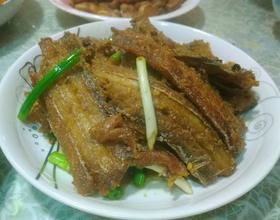 炸好之后把油都倒了,留一点点,加花椒干辣椒,姜片,酱油,醋,白糖翻炒一下,加点水,收汁。