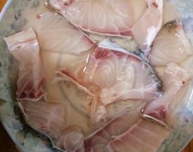 把切好鲩魚,放在調料裏醃下十分鐘左右。調料看自己喜好,只要是醬油,花生油,姜等,喜歡吃辣的,可以放辣椒醬。
