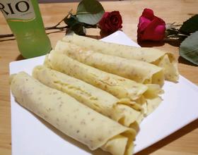 1.黄油融化成液体,才利于搅拌哦~2.芝麻要用熟的哦,可以买熟芝麻直接使用,比如我就是。也可以买生芝麻自己炒熟。当然这里建议给黑芝麻,这样成品色调更好。3.准备平底锅,注意平底锅一定要冷锅哦,不能加热。4.做好的蛋饼不能等放冷了卷,等放冷的时候,蛋卷开始变脆了。