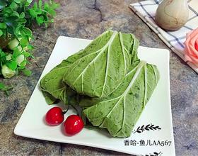 - 12. 铺好白菜叶,放上搅拌均匀的饭。