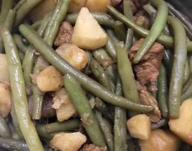 准备辅料!土豆去皮切块!豆角掐头去尾,洗净!