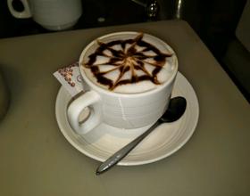 打好的奶泡表面一层没那么细密的刮掉,要勺子勺进咖啡里面去