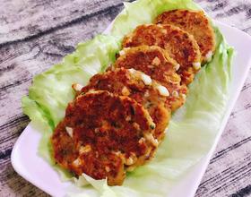 电饼铛接通电源,放少量油,可以用厨房纸巾吸去多余油份。取适量土豆泥团成圆球,放到铛上,用手按压成饼,煎至两面金黄即可。