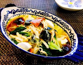 1.这道菜的青菜换成其它任意青菜均可2.由于精华火腿和咸鸭蛋均有咸味,所以汤里放盐要慎重,最好尝一下,如需要再酌量加盐3.蒜一定要煎一下放在汤里才香,煎蒜的步骤一定不能省4.高汤也可以用浓汤宝代替,因为浓汤宝有咸味,水要再多加一些,不然会咸。没有鸡丝也可以很好吃,