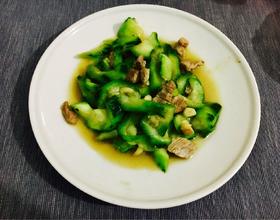 再放瘦肉翻炒,最后放入丝瓜,放少许酱油和盐再翻炒,加少许水,盖上盖子,大概煮几分钟就可以啦