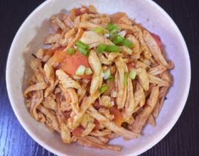 西红柿入锅 翻炒至柔软出汁 适量盐 调味