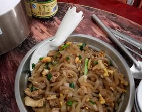 - 9. 鸡蛋先炒好,再把瘦肉虾肉下去炒,再下葱,最后加点盐再下点酱油,把薯粉签倒进去炒均就大功告成