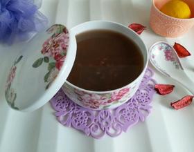 将煮好的红豆薏米汤盛入碗中,调入适量蜂蜜即可食用。