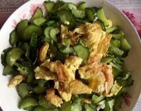 把鸡蛋盛出,放入两勺油,放入黄瓜,放入盐番炒