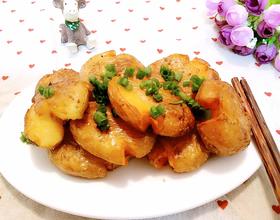 取一个大一点的盆放入土豆,撒上椒盐,抖几下再撒一些椒盐,使之均匀的裹上椒盐