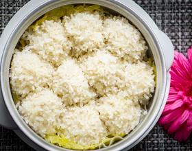 肉丸上锅蒸30到40分钟,至糯米软糯