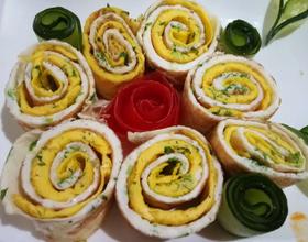 煎熟的蛋白和蛋黄卷起来装盘即可