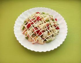 拌匀装盘,浇上沙拉酱,吃的时候拌匀