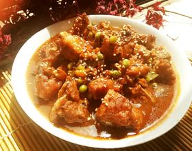 - 10. 倒入锅中排骨里开煮饭继续焖到收汁为止。