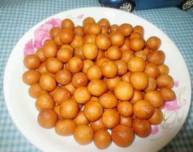 面团不要太软,能揉搓住不散就可以了。包制花生的时候一定要有耐心,面皮不要太大,太厚,能包裹住花生就行了。炸的时候要小火,花生刚下锅的时候不要去翻动,可以端起锅轻晃几下。这个配方里我加了3克盐,4克糖,个人觉得咸甜度刚好,可随自己口味增加或减少盐糖的用量。蜂蜜可以使成品颜色更油亮,建议不要省略。