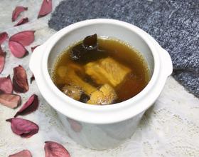 准备好炖锅,将煮排骨汤以及松茸,木耳,精盐一起放入,我用的是煲汤宝