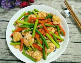 - 3. 取锅热油爆香,偏炒一下虾仁变色断生捞出