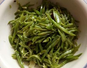 等肉炸成干,放入葱蒜,炸成这样,惺味会减少