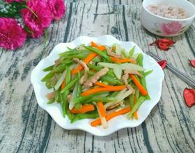 放入豆角段、土豆丝、胡萝卜丝,大火翻炒。