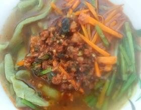 面煮熟以后,放入汤中,加入盐、味精、酱油,淋入油即可