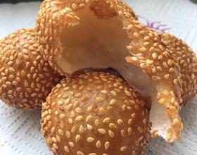把糯米团平均分成15到20克的样子,滚上芝麻