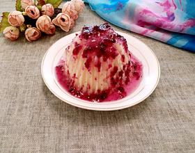 做出山的形状,用叉子划出凹凸不平感来(这个有点高了,后面我该成矮的了)再浇上蓝莓酱就可以了