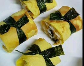 包起来,开始准备切,注意试着前后切,因为米饭有点粘。