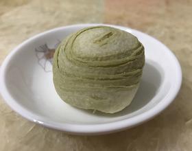 - 2. 把水油皮和油酥的材料分别混合,揉成光滑粉团,注意,制作油酥时抹茶粉与低粉充分混合均匀再加猪油。加上保鲜膜后放入冰箱冷藏静置。