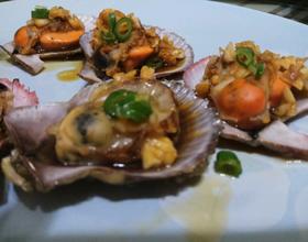 去半壳滴几滴蒸鱼豉油,放香葱末蒜末,烧热由浇上即可