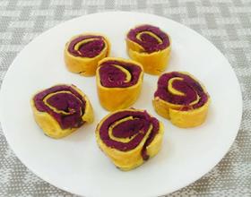 把搅拌好的紫薯,用汤勺平摊在鸡蛋上面。紫薯比较粘,要小心均匀摊开。